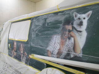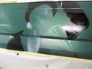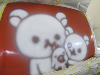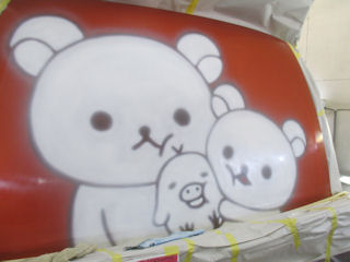 濃い塗料から薄い塗料へ、周りに飛び散らない程度に塗っていきます。