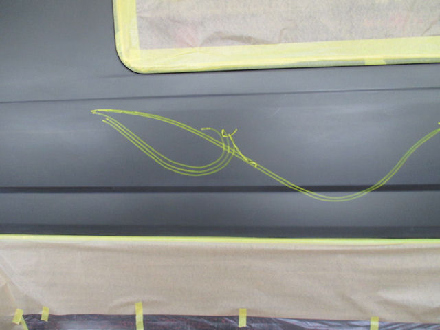塗装した窓埋め部分、十分乾かして再度足付けマスキング。