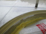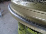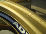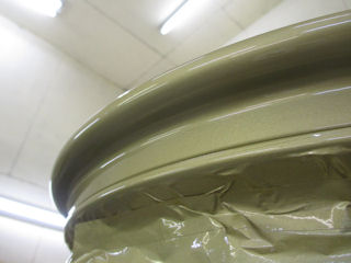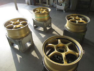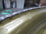 おとといの夜は大船渡病院の救急センターへ、 下の息子が夕飯前に吐いたらしく 病院への道中、院内でも吐き焦りましたが、 胃腸炎と診断、復活の早い鍛えられた身体!?なんで 昨日から走り回ってます(^^; 保育園はお休みしましたがね~。 Facebookではお騒がせしました。 皆様ありがとうございましたm(_ _)m で、大船渡に出来たホーマックに一緒に行ってみました。 でっけ~なぁ~、中も広い~、 こんなん高田にも出来たらいいのに~(><) さて、今回はホイールです~。 カラーホイールだからできるかなと。 ガリ傷~、 腐食~と、 削って薄くパテ入れます~。 リム裏のゴムカスと腐食も 削って行きます。 あらかた出来たら、 サフェ養生して~、 サフェ塗装~。 リム裏まできっちりね~。 難儀はここから、車じゃないんで色番号も配合表もなく、 ひたすら感で色作ります~。 ゴールドなんてそうそう車にも無い色なんで苦労ッス。 自分で8割納得したらヤメます。 おそらくキリがない・・・。 正解が不明なんで(^^; また養生~。 塗装します~。 たぶん大丈夫。 リム裏までツヤツヤに。 タイヤ引っ張ったら見えちゃうんで(^^; 剥がします~。 スポーク部分のツヤが引けてんので、 ツヤ出せばバッチリでしょう(^^) 3日乾燥させて明日納品します~。 箱に入れるので跡が付いちゃうからね(^^;