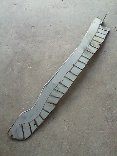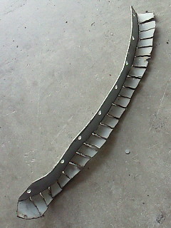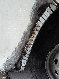 薄いブリキ板にパテ跡。