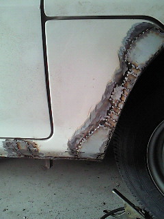 差し当たりパテを削り、純正鉄板が見えるところまで
