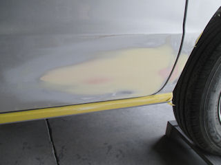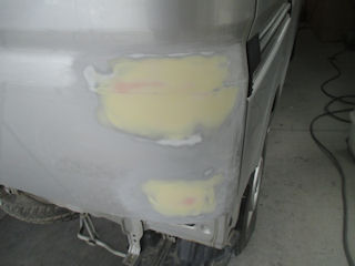 バンパーは炙って変形直し、パテでカタチ作ります。
