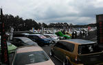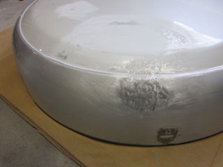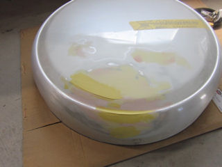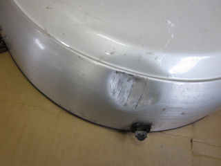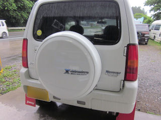 いや~暑い暑い、毎日夕方には具合悪くバテバテ(><) 昨日テレビでやってたけど、心筋梗塞の疑いがある人の症状、 9割自分にあてはまってて…、ちょいビビり…。 もうちょいしたら検査してみよう…。 さて、山梨遠征の工場長、 集まった台数400台オーバー、すごいね~! 特別賞だかもらい帰省、今日は定時に来て仕事してましたよ~! オレじゃムリだ、途中で挫折…。 若いんだなっ(^^) さて、お仕事です~。 今日はジムニーの背面スペアタイヤカバー。 バックしすぎて当てちゃったらしいす。 アルミ製なのでガンガン叩けません、伸びちゃうんで。 ドリーという鉄の塊の当て板を当てたり押さえたりしながらハンマリングです。 少しずつカタチを整えて行きます。 変形が結構広範囲なので、バタめかないようになったらパテ整形です。 アルミが薄いんですぐ割れちゃう可能性あるので厚盛りできません。 薄く何度も削って塗っての繰り返し。 全部が曲面なので意外に大変なんです。 終わったらサフェです~。 純正色の3コートパール塗装して完成ッス。 装着してお引渡しです~(^^) 買い替えで5~6万するらしんで 安く済みましたね! お気を付けてバックしてください~!