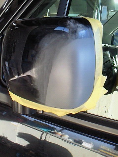 なぜかドアミラーの傷に溶剤掛かると剥げてくる・・・、