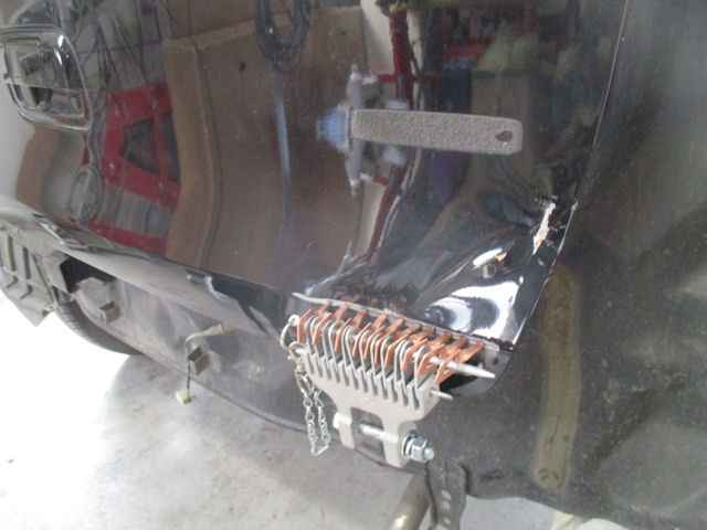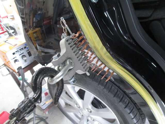 まずはリヤフェンダーの耳引っ張りクランプで引っ張り、