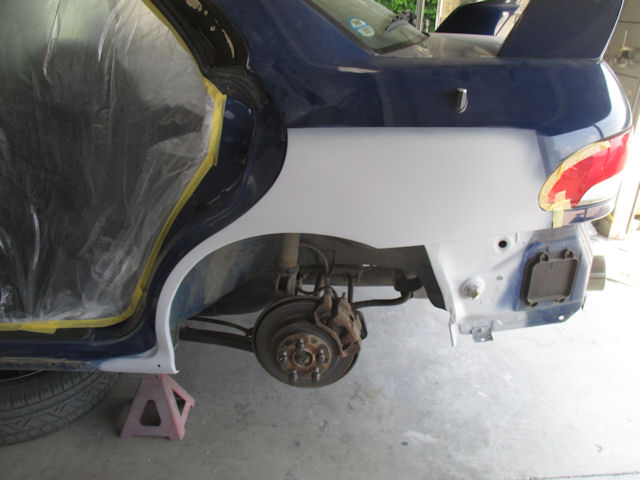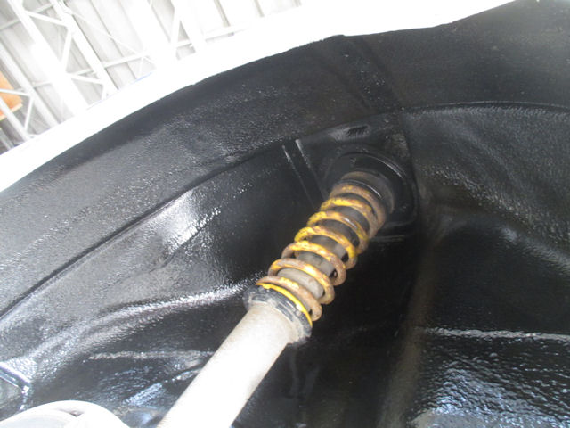 先にタイヤハウス内をチッピング黒で仕上げます。