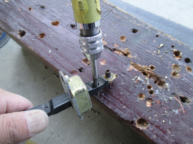 まずはストッパーピンの手前に穴開けます。