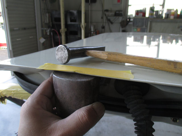 一応テープ貼って、当盤当てて鈑金ハンマーで叩きます。