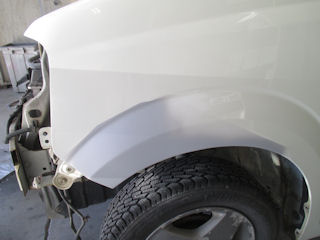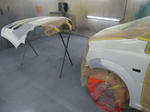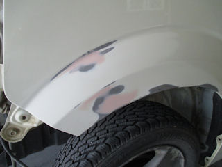 フェンダーも板金してカタチを戻してパテ。