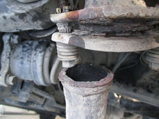 ジャッキアップして、フランジとフランジを留めてるボルトを外しますが、