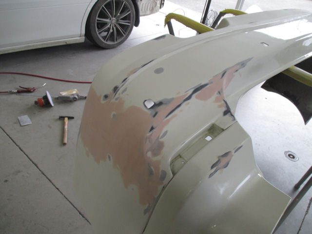 割れ欠け裏側足付けしてFRPマット貼って行きます。
