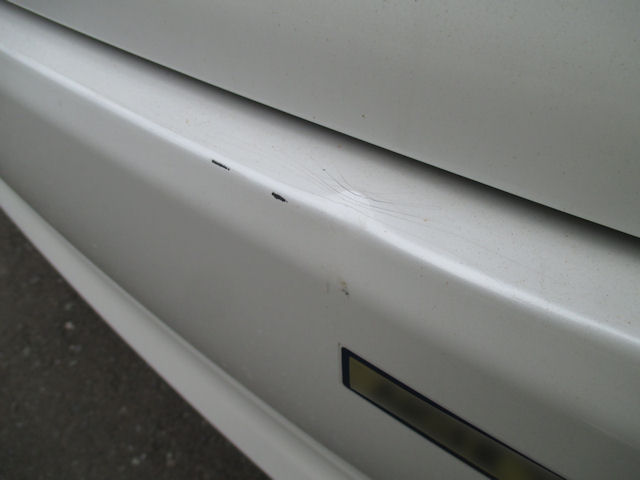 ポールにバックして当たったリヤバンパーと、