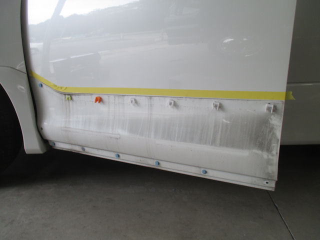 縁石に擦ったサイドパネル修理、