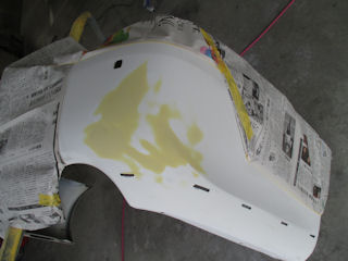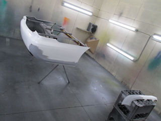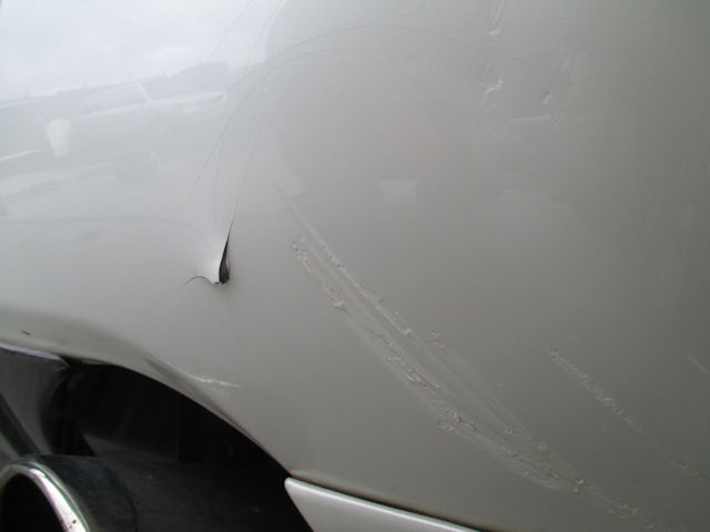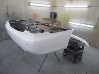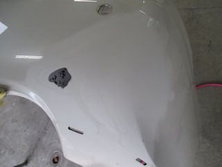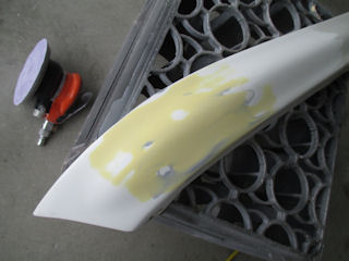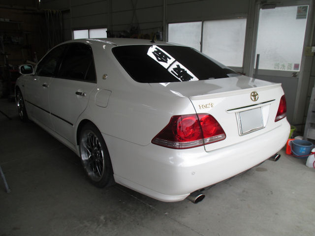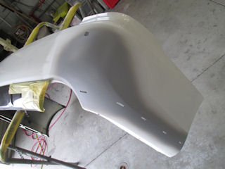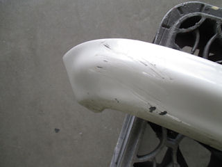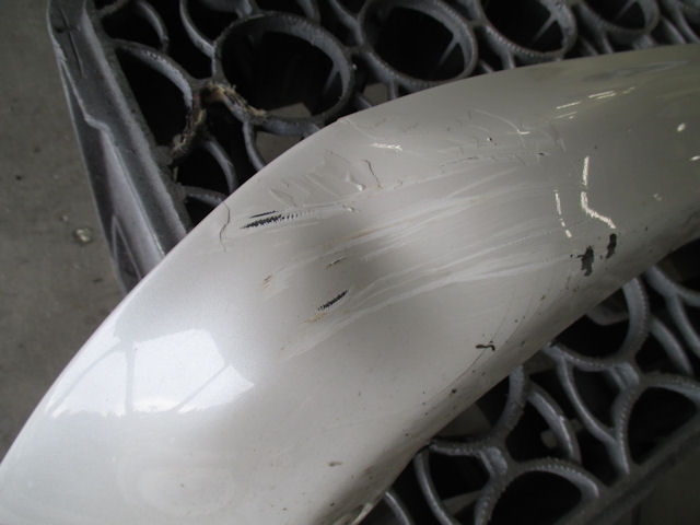 リヤバンパーの裂けは両面から溶かしてくっつけます。