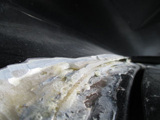 ボディに埋め込まれ一体化処理したハネを外す作業です。