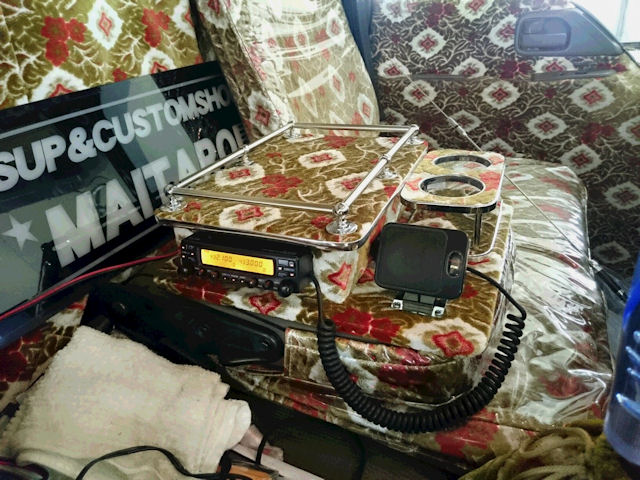 ドリンクホルダーにまで生地貼っちゃいました(^^;