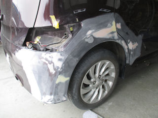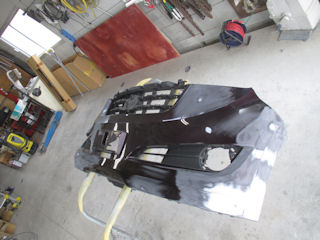 フロントバンパーはあちこち凹み、傷なんで外して修理。