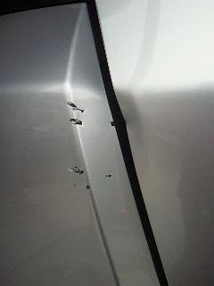 リヤゲートは裏から叩き、コーキング剥がれない様に慎重鈑金で、