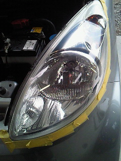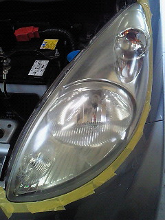 ライトがえらい黄ばみなんで早速磨きです。