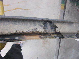 サイドステップを外すと、アチャ~ロッカーパネルもベコッと。
