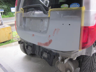 昨日久々にGoogleのストリートビュー見てみたら、 更新されてるっ! 今年の6月Ver.(^^)v こないだまで2011年だったんで、 積載もショボかったんですが~、 現在の姿になってました(^^)v 工場の窓にも文字入ってるし~、 ん?勝手口から何か見えるぞ? ちょっと拡大、 さらに拡大っ! このデカイおケツは工場長だなっ、 ちょうどこの時オラも写メってました(^^; セルシオのマフラー製作中にGoogleに撮られたようで(笑) グーグルマップから「舞太郎」で検索、ストリートビューに変換して見てみてね(^^) さて、昨日の続き嫁のライフです~。 リヤゲートガンガン引っ張ります~ベコベコなんで。 引っ張り、叩いて整形していきます。 最小限まで叩いてパテで整形~。 サフェIN。 リヤバンパーもサフェINです~。 塗装します~、 塗装しました~。 リヤバンパーもっ。 何事もなかったかのように完成~! アクセルとブレーキ間違いは怖いっす(><) あ、ついでに潰した家の雨樋も途中から切って交換ッス(^^; サッシの下のトタンが痛々しいですが(><)