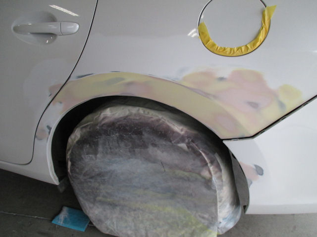 かなり引っ張ってパテ整形リアクオーター付近。