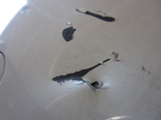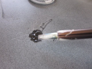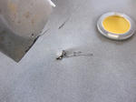 PPバンパー補修用のコテで溶かしながら穴埋めします。