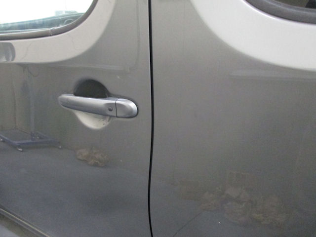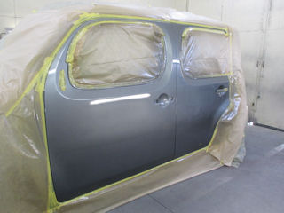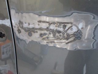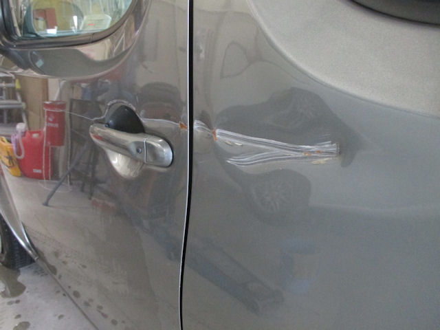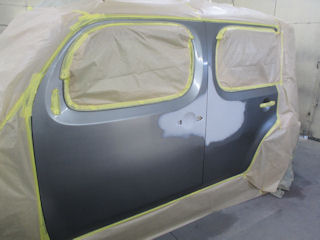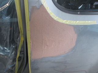 不要部分を削って仕上げパテを塗ります、助手席も。