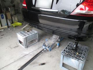 ジャッキで上げて左右をパンタジャッキで合わせます~。