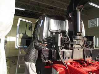 荷台を外してフレームレストア済み、キャビン直してボディが乗ります。