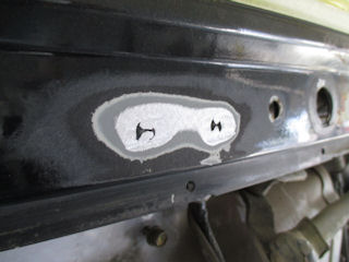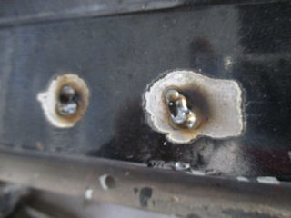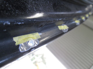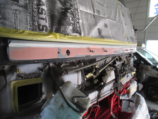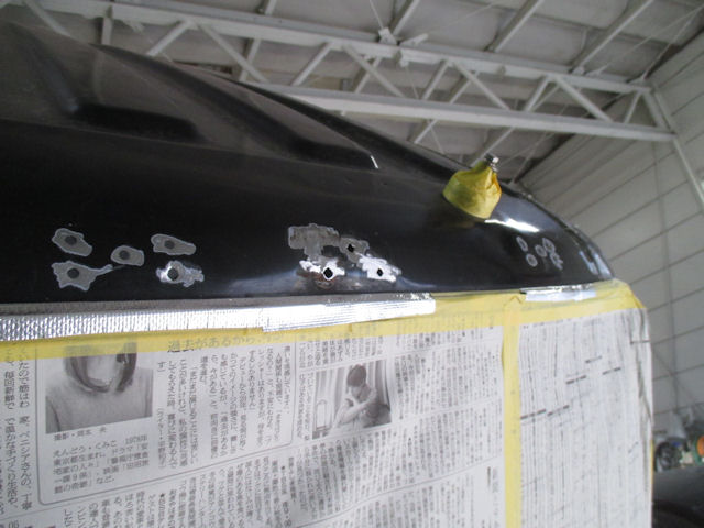 で、無数に空いたバスマークやバイザー取付穴などを全て埋めます。