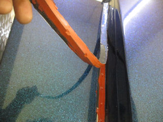 ってコトでウチで使ってる鈑金用の密着して塗装も乗るコーキングに変えます。