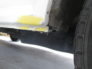 前後左右同じ場所なんで2柱リフトのアームで凹ましてますね。
