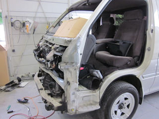 左右ドアも外し、溶接を全てスポットカッター等で外します~。