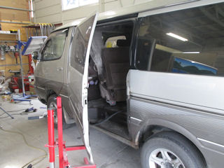 上下ヒンジを残し、ドアリフターで持ち上げ、