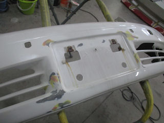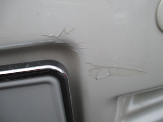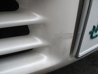 フロントバンパー突いたら純正色剥がれ、純正色出てきた。