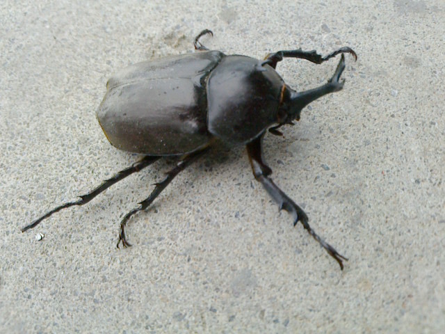 てか、けさ軒下のクルマを動かしたら地面にカブトムシ♂が(@@)