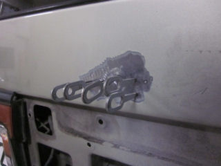 まずリヤゲートの凹みをワッシャーで引き出し~。