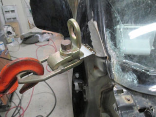 鉄板を溶接してクランプ掛けて引っ張ります。