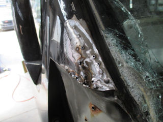 運悪くフロントガラスまで割れちゃってます。