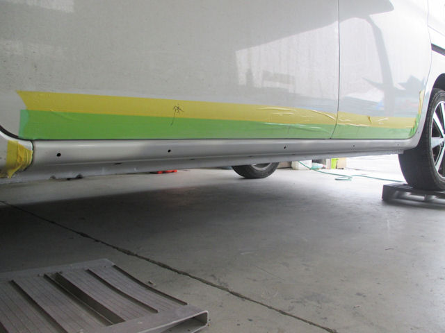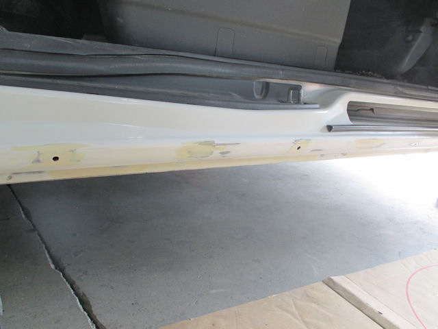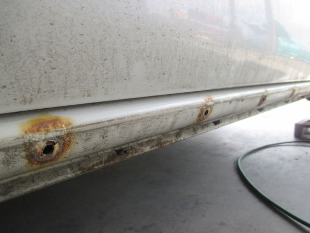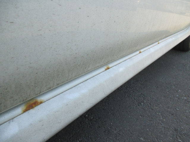 純正サイドステップの上から茶色の錆にじみが気になると。