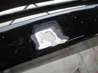 ついでにぶつけて穴空けたってリップの穴埋め修理。