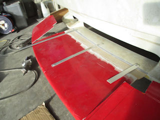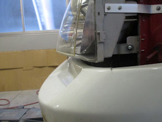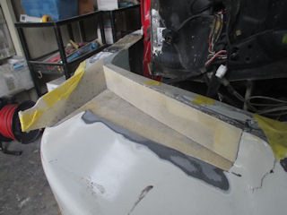 ライトの内角を出っ張りの先端に決めて一旦上にFRP板を貼ります。