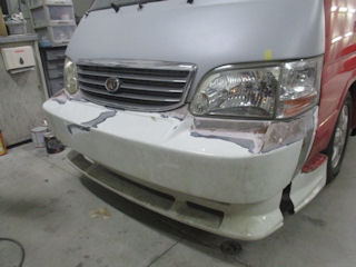 どうにか戻したいと、ちょうど大破させたバンパーを取ってたんで使用します。