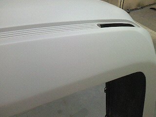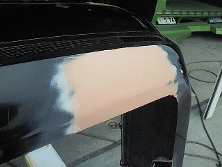 今回は15クラウン用モードパルファムのRバンパー、 純正マフラー使用の為のマフラーレス加工です。 とりあえずマフラー部分のヘコミをカット。 ただカットするとFRPマット貼った時に段差が出るので、 サンダーでちょいと小細工しておきます。 ここは企業秘密ってコトで(^^; サンダー掛け終わったら、 表側から型を作り貼り合せます。 最下部のラインが真っ直ぐなので、 厚めの平鉄をバイスグリップで固定し、 カタチを整えます。 それからFRPマットを脱泡しながら貼って行きます。 今回は#450を3枚重ね。