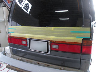 リヤのマークを外してマスキング、