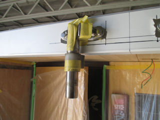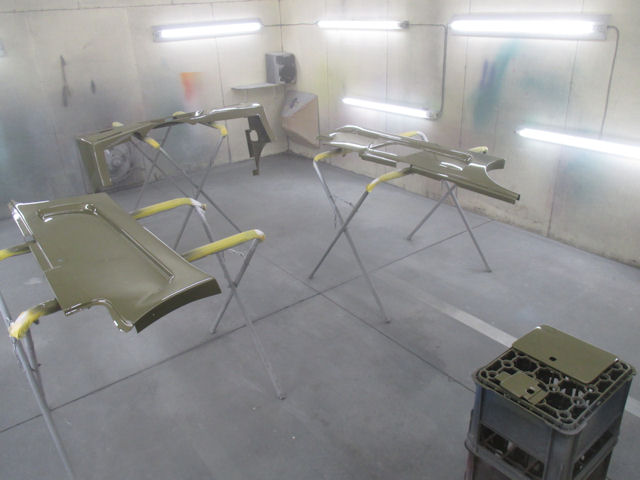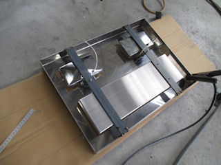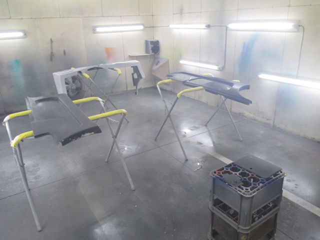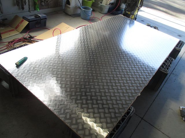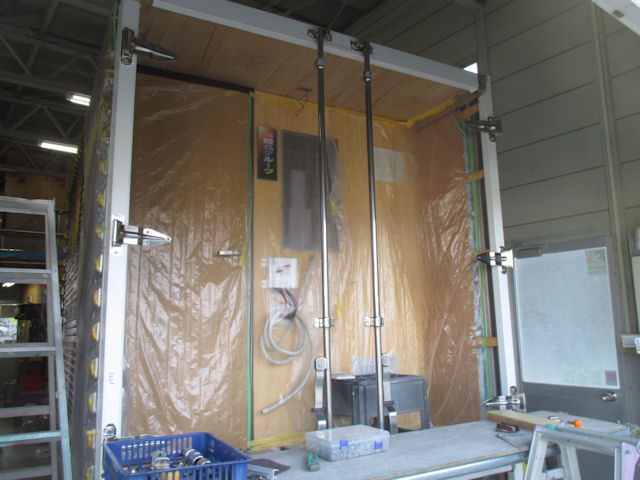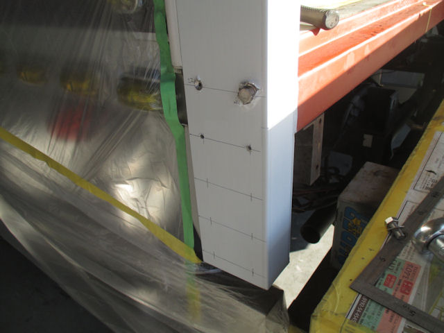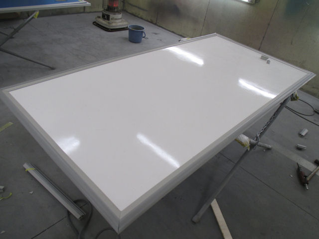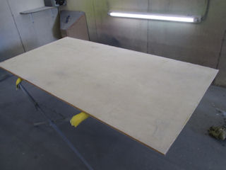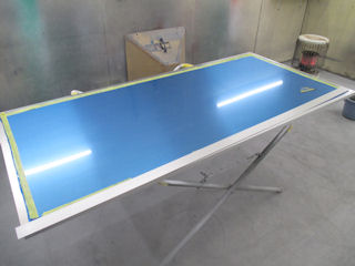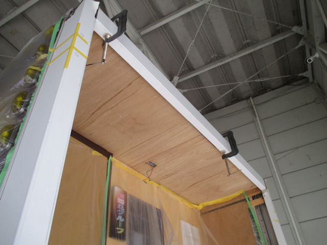 同時作業で扉となる板にFRPで作った板を貼り付けます。