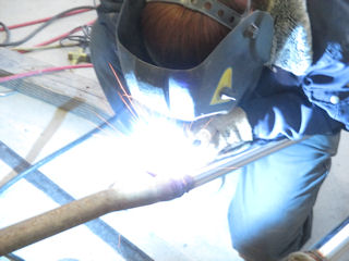 中間パイプをステンレス溶接。