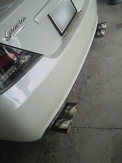 社外マフラーですが伸縮加工です。