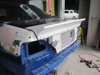 トランクに羽根付けますが、密閉されてたんでくり抜きました裏側。